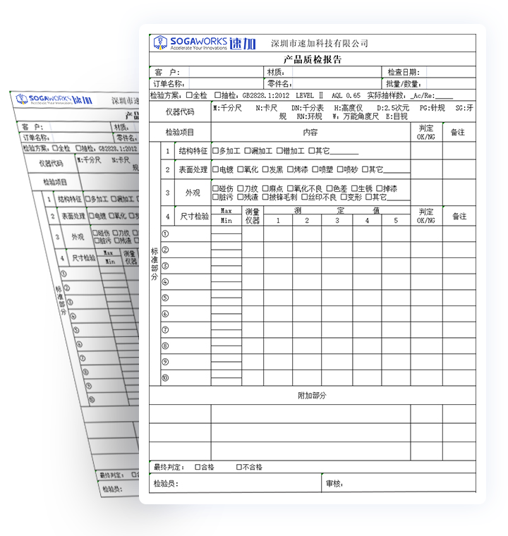 速加設有專業質檢團隊,確保零件品質;對加工完的零件,發貨前進行100%全檢。確保滿足您的要求。